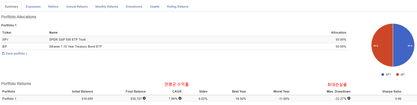 3. 내가 구성한 포트폴리오의 연평균수익률과 최대손실율을 구할 수 있다.